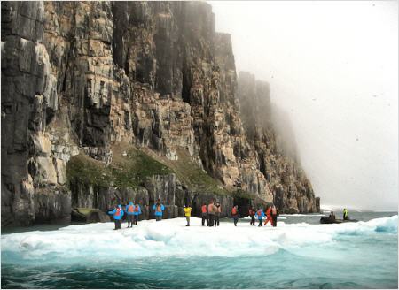 Das heisst, der Alkefjellet (Lummenfelsen in der Hinlopenstrasse) beispielsweise ist defacto nicht mehr vom Schlauchboot aus, sondern nur noch von der Reling des Schiffes aus in Augenschein zu nehmen. Wenn sie also nicht über Teleobjektive mit großen Brennweiten verfügen lohnt sich die Sache für Sie nicht mehr.